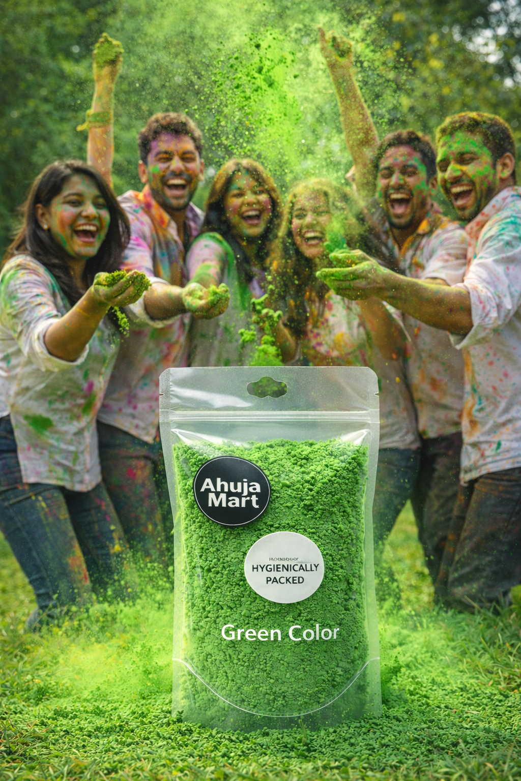Celebrate Holi with vibrant energy using Ahuja Mart Green Color Powder, a premium-quality bright green gulal designed for festive celebrations, decorative use, and cultural events.